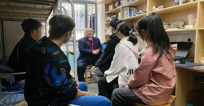 为更好地帮助2022级新生适应大学生活,11月5日下午校关工委退休老教师代表封定一教授走进我院2022级新生宿舍,与新生们进行了热烈交谈。学院新生辅导员、部分学生代表参加了本次活动。