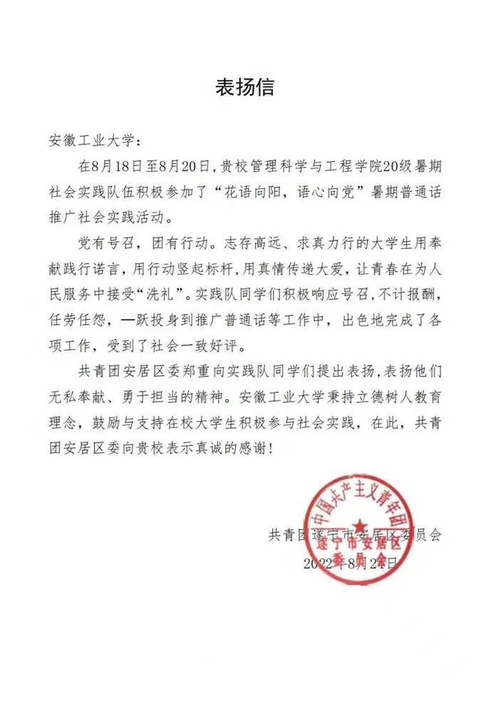此外,在暑期“三下乡”社会实践中,支部多名成员积极报名组队参加,社会实践活动参与率100%。值得一提的是,成员所组织的队伍均成功申报为国家级项目、院级重点项目,成果颇丰。支部成员们在实践期间,团结友爱、积极主动,出色的完成各项工作,获得实践地单位一致好评并向学校发来了表扬信。支部成员乐于奉献,大胆创新,将社会实践活动内容与“互联网+”比赛相结合,在实践活动中练习专业本领,在“互联网+”大学生创新创业大赛中荣获安徽省金奖。