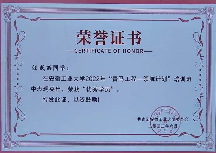 8、获校2022年“青马工程——领航计划”培训班“优秀学员”;