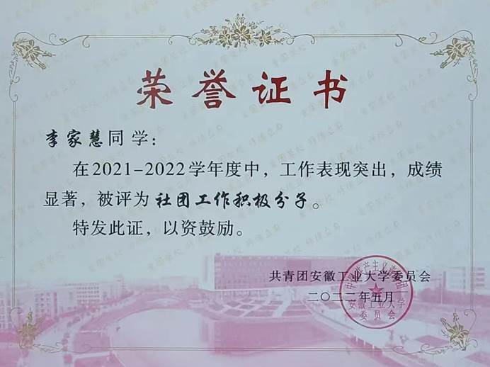 7、获校2021-2022学年度共青团宣传工作中荣获工作标兵称号;