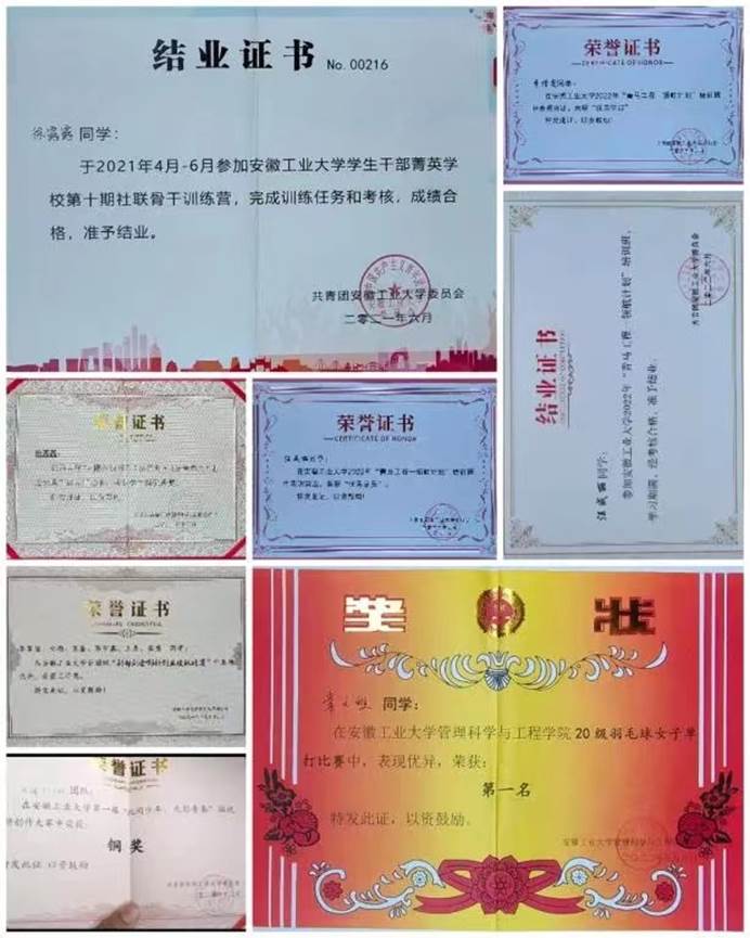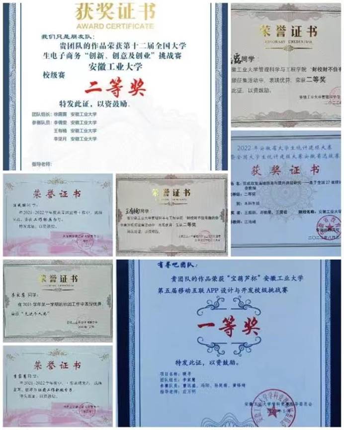1、获2022年安徽省大学生统计建模大赛暨全国大学生统计建模大赛安徽省选拔赛二等奖;