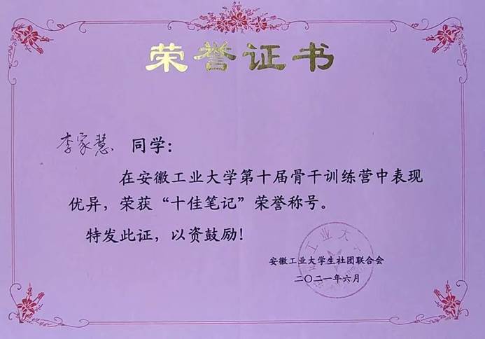 12、获校2021年第10届骨干训练营“十佳笔记”的荣誉称号;